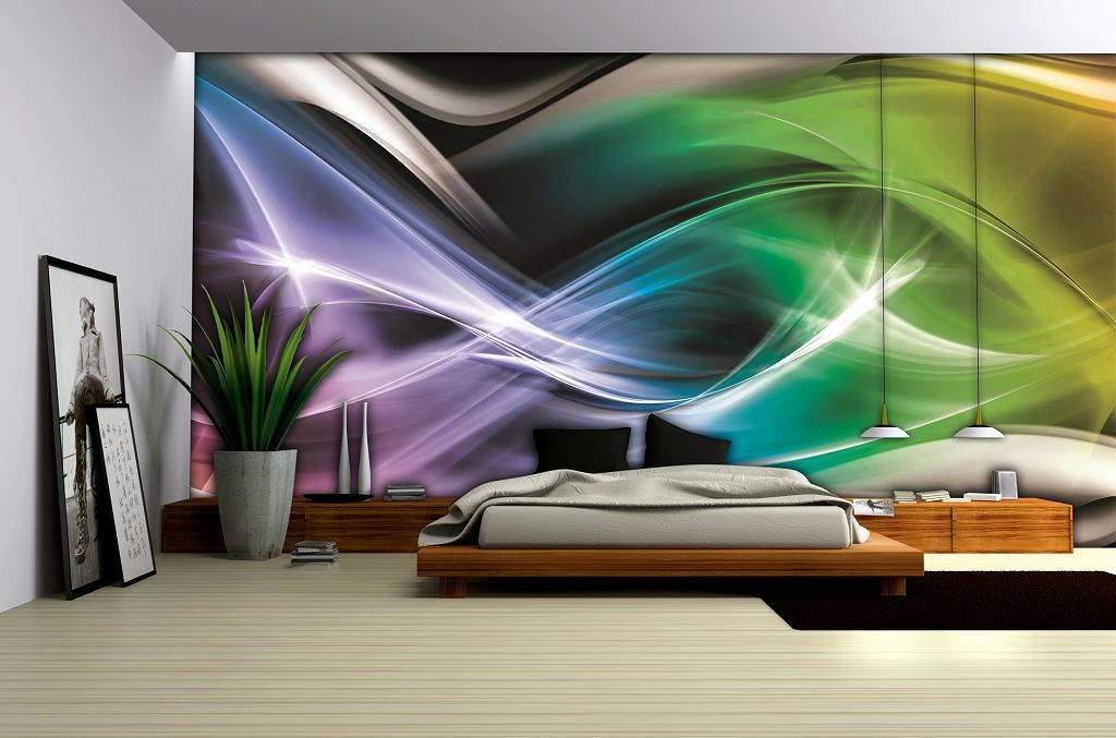 Отзывы о Флизелиновые фотообои в спальню 416x254 см Абстрактное искусство - Яркие волны (775VEXXXL)+клей