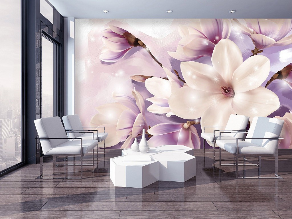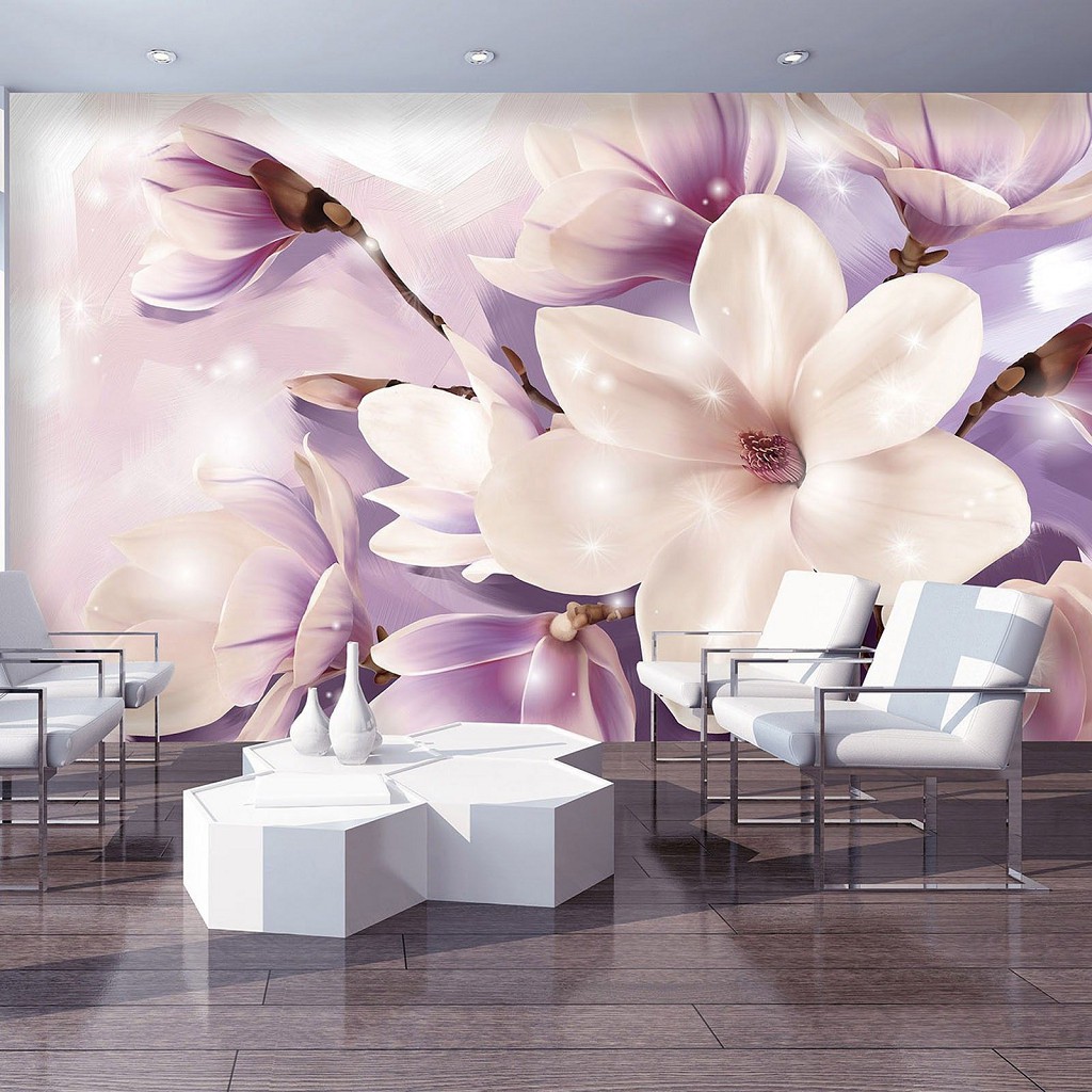Отзывы о Флизелиновые фотообои в гостиную 3д 416x254 см Фиолетовые цветы магнолии (3506VEXXXL)+клей