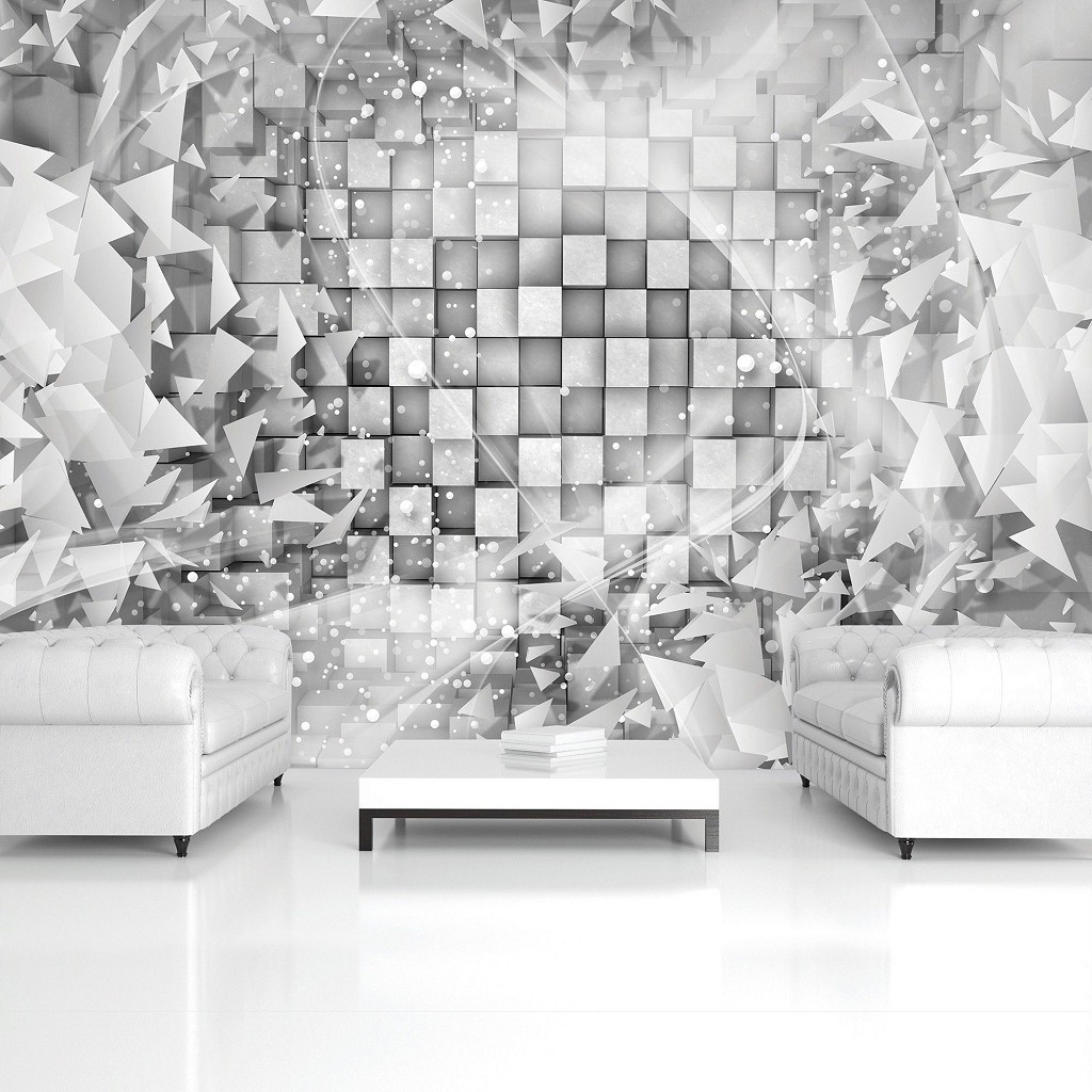 Клетка флизелиновые 3д фотообои 416x254 см Серая геометрическая абстракция (3028VEXXXL)+клей