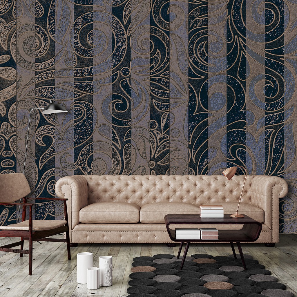 Флизелиновые фотообои с узорами 416x254 см Полосатый орнамент золото (13536VEXXXL) +клей
