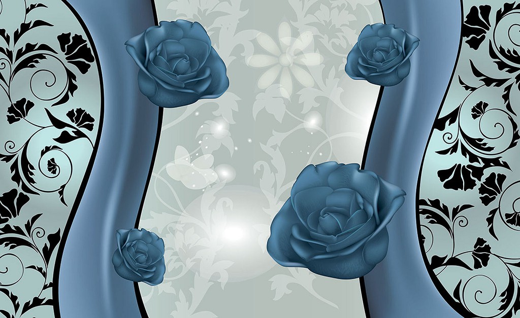 Отзывы о Флизелиновые фотообои в интерьере гостиной 416x254 см Синие розы на светлом фоне (1242VEXXXL)+клей