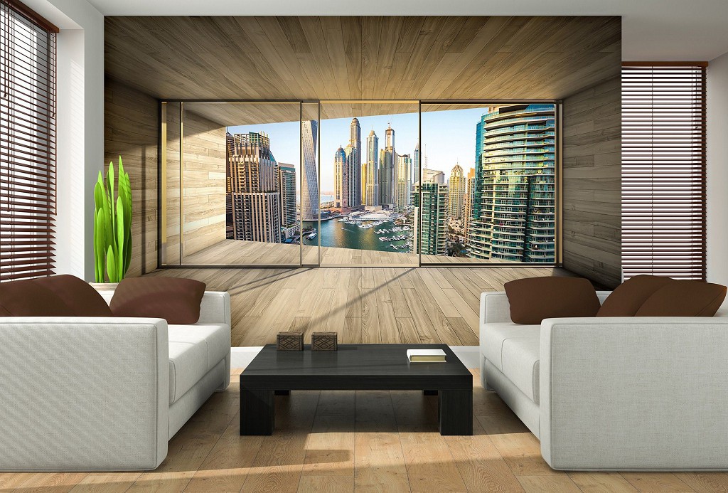 Отзывы о Флизелиновые фотообои три де 416x254 см 3д Вид из окна террасы на город Дубаи (3295VEXXXL)+клей