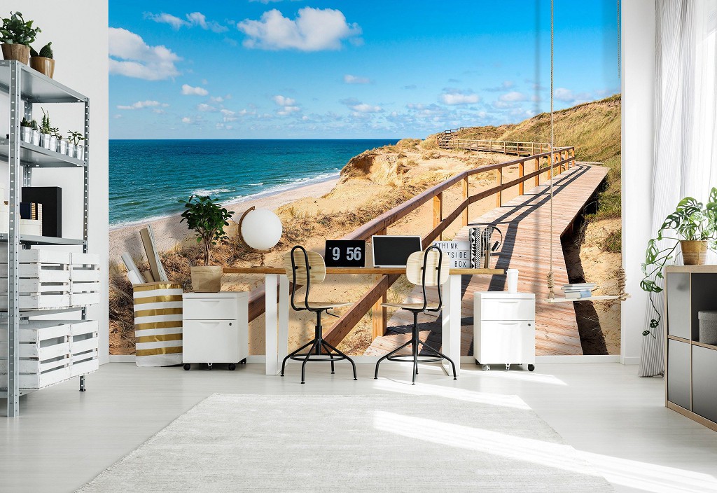 Красивые флизелиновые фотообои с природой 416x290 см 3D Морской пляж Пейзаж Деревянный пешеходный мост (14108VEXXXXL) +клей