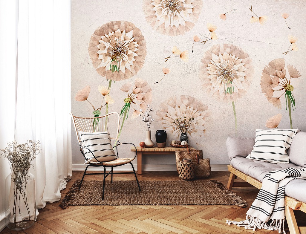 Флизелиновые фотообои 416x290 см Природа Цветы Одуванчики Искусство Пастели (14104VEXXXXL) +клей
