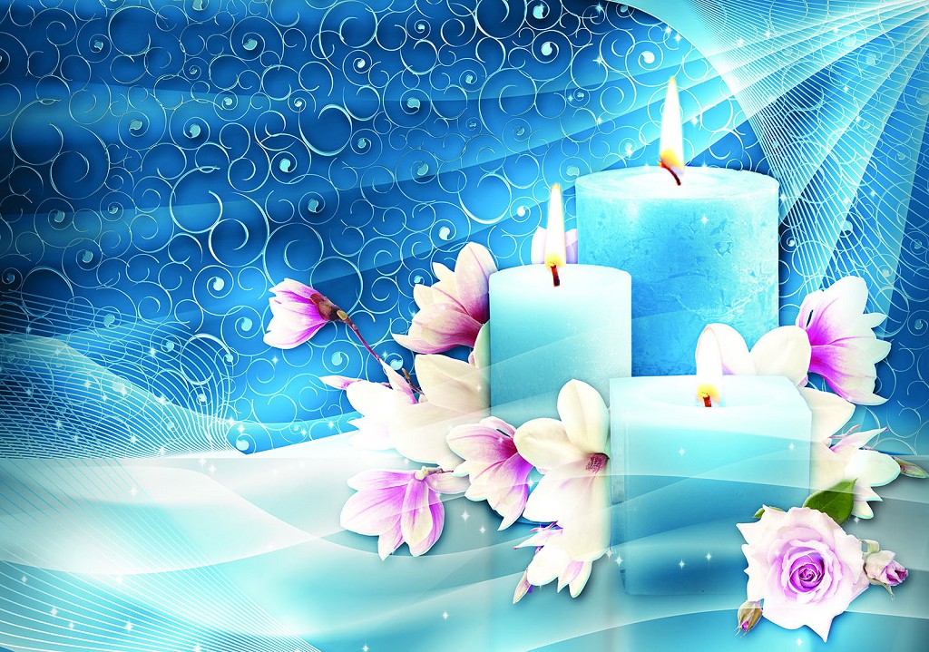 Отзывы о Флизелиновые фотообои на всю стену цветы СПА 416x290 см Свечи и магнолия на синем фоне (10673VEXXXXL) +клей