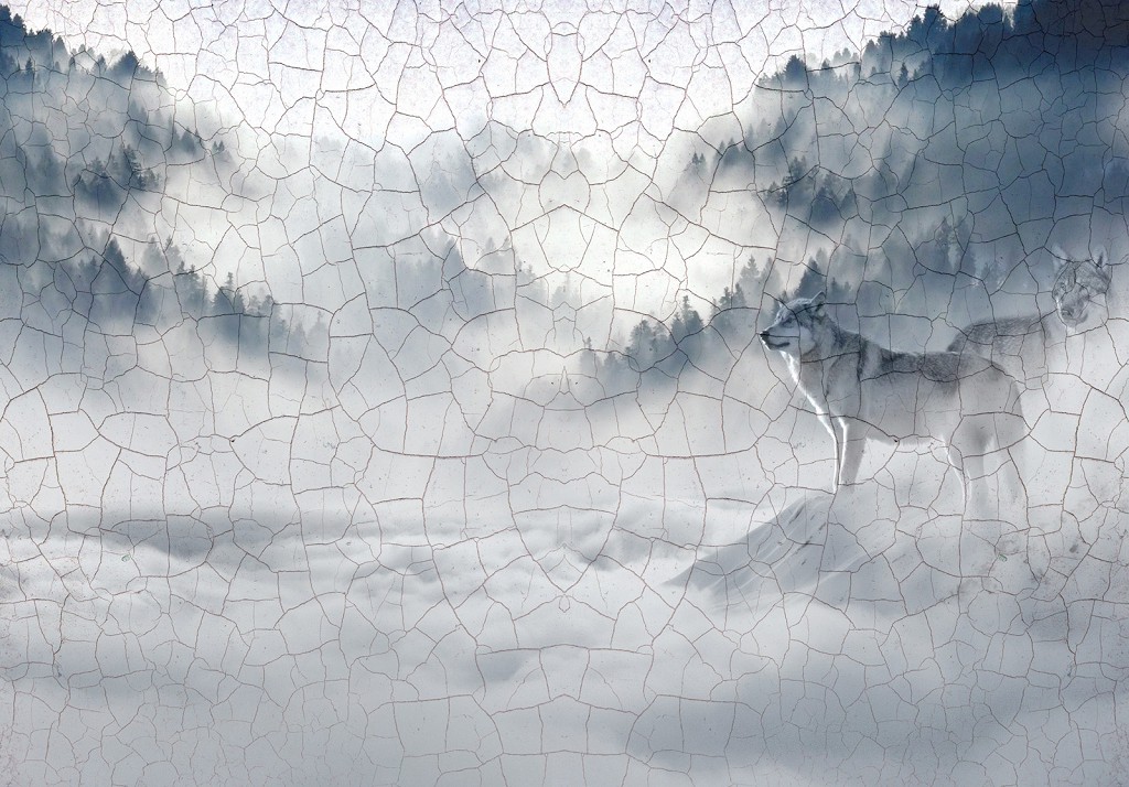Отзывы о Флизелиновые фотообои природа животные 416x290 см Волки в тумане на потрескавшейся стене (13549VEXXXXL) +клей