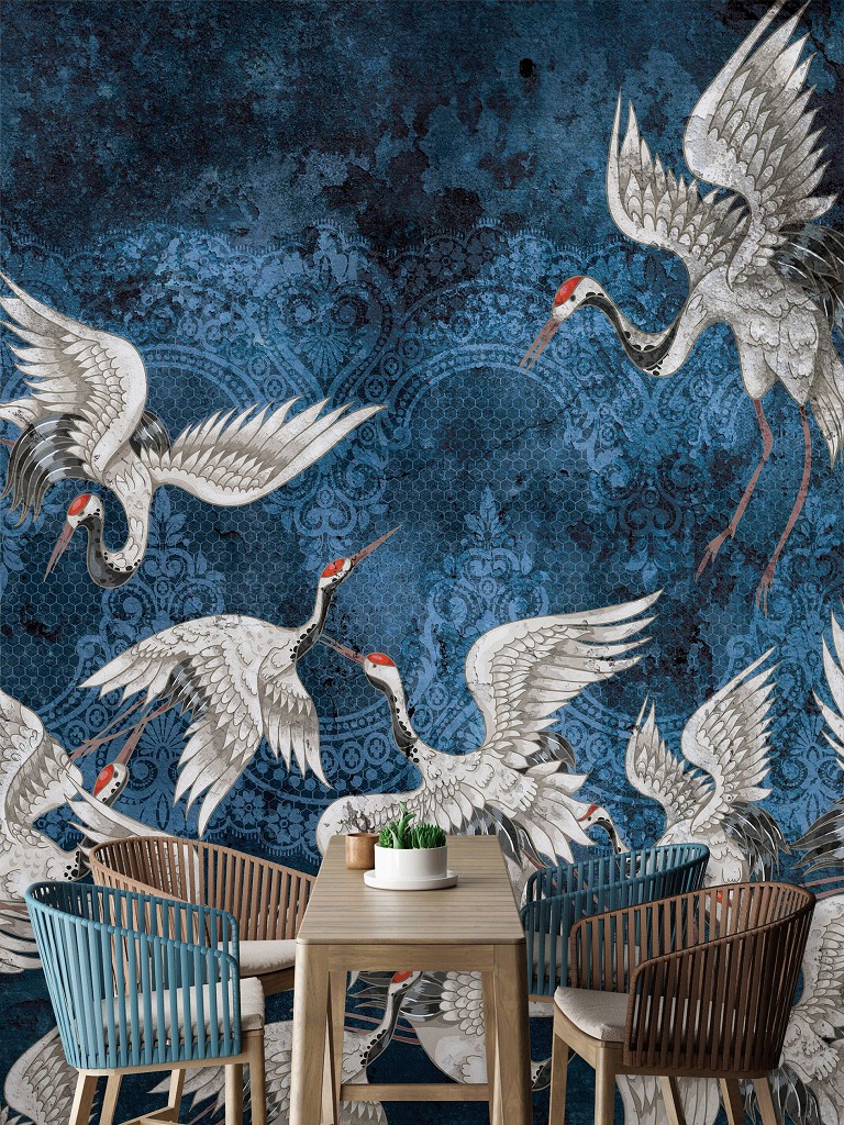 Флизелиновые фотообои с птицами 416x290 см Журавли на синем фоне (13889VEXXXXL) +клей
