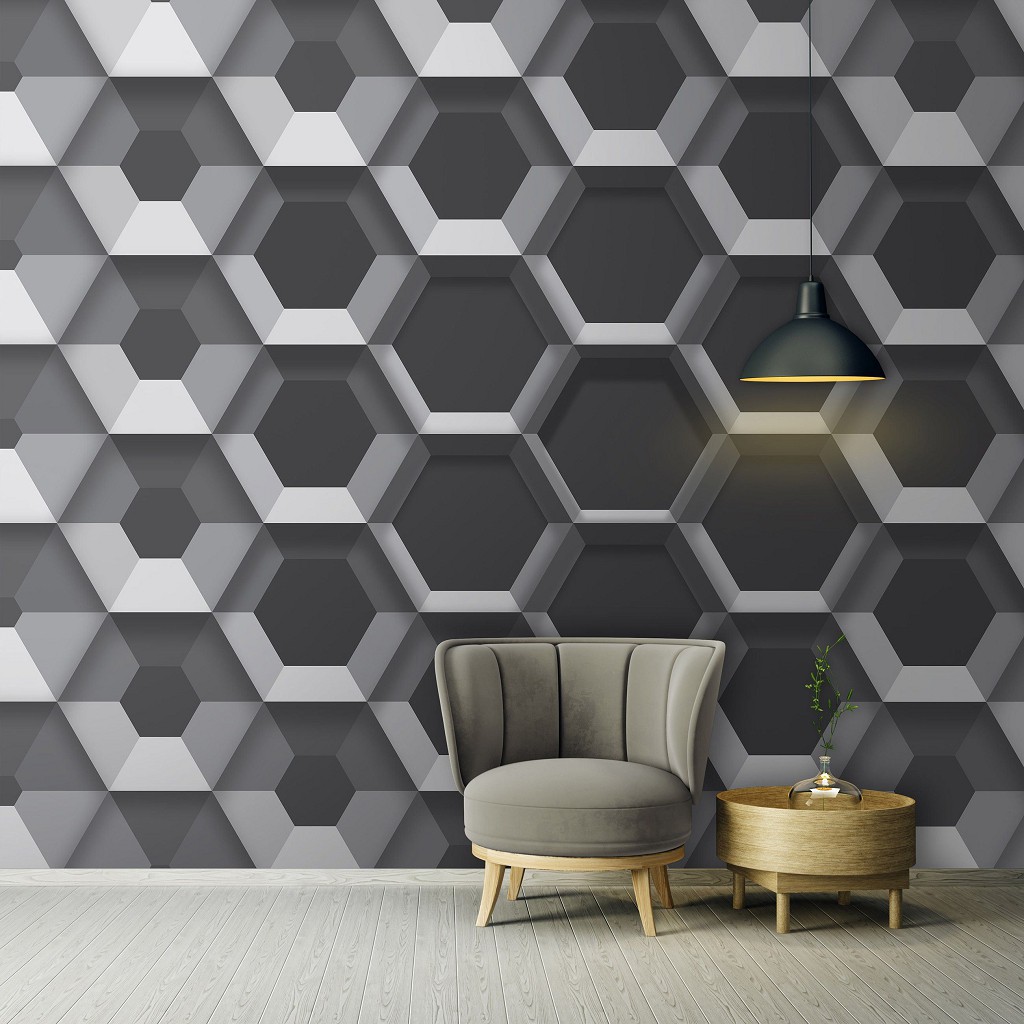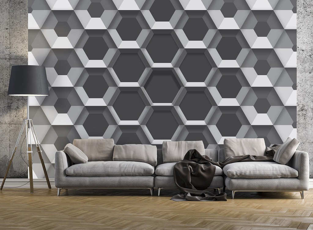 Зд флизелиновые фотообои соты 520x318 см узор из серых шестиугольников (10761VEXXXXXL) +клей