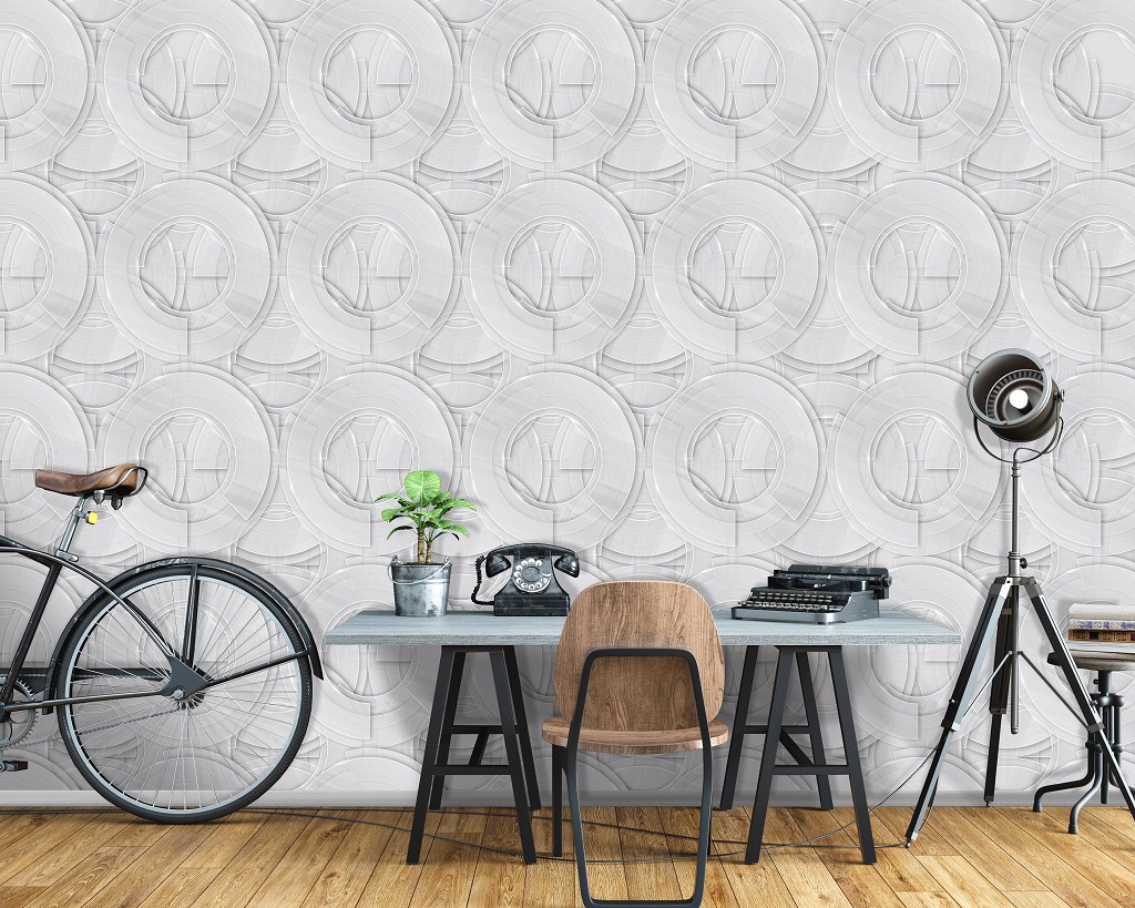 Отзывы о Флизелиновые фотообои на кухню 520x318 см Мозаика серая геометрия в кругах (11204VEXXXXXL) +клей