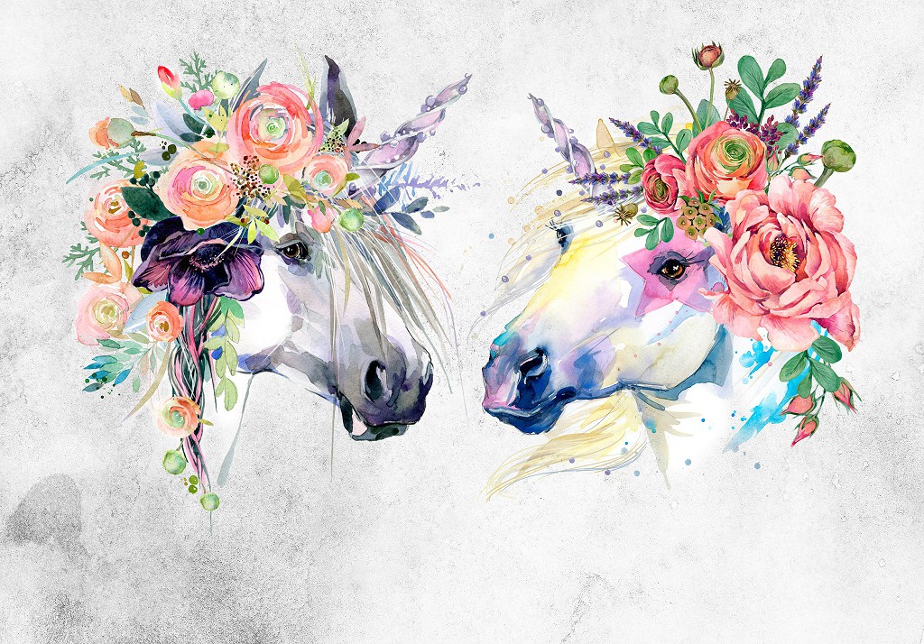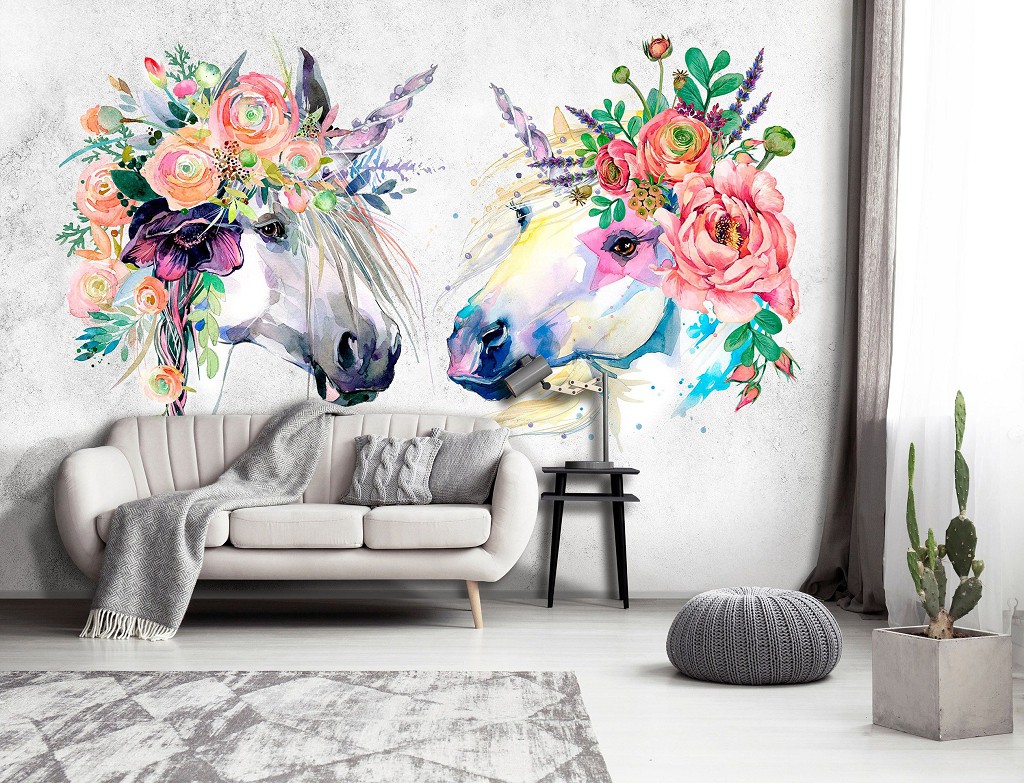 Искусство флизелиновые фотообои Арт Единороги Лошади Цветы Бохо (14126V)+клей