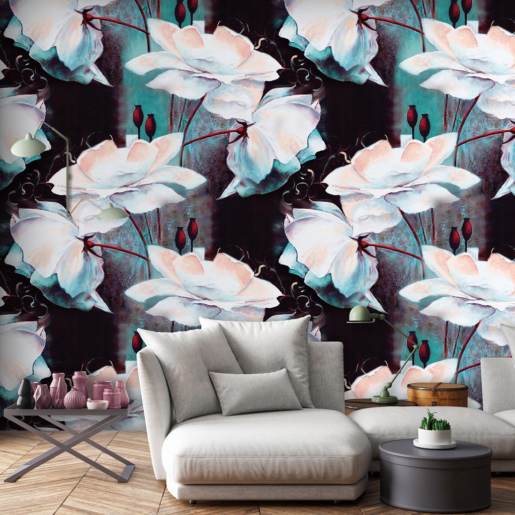 Отзывы о Красивые флизелиновые фотообои цветочный узор из белых роз (10031V)+клей