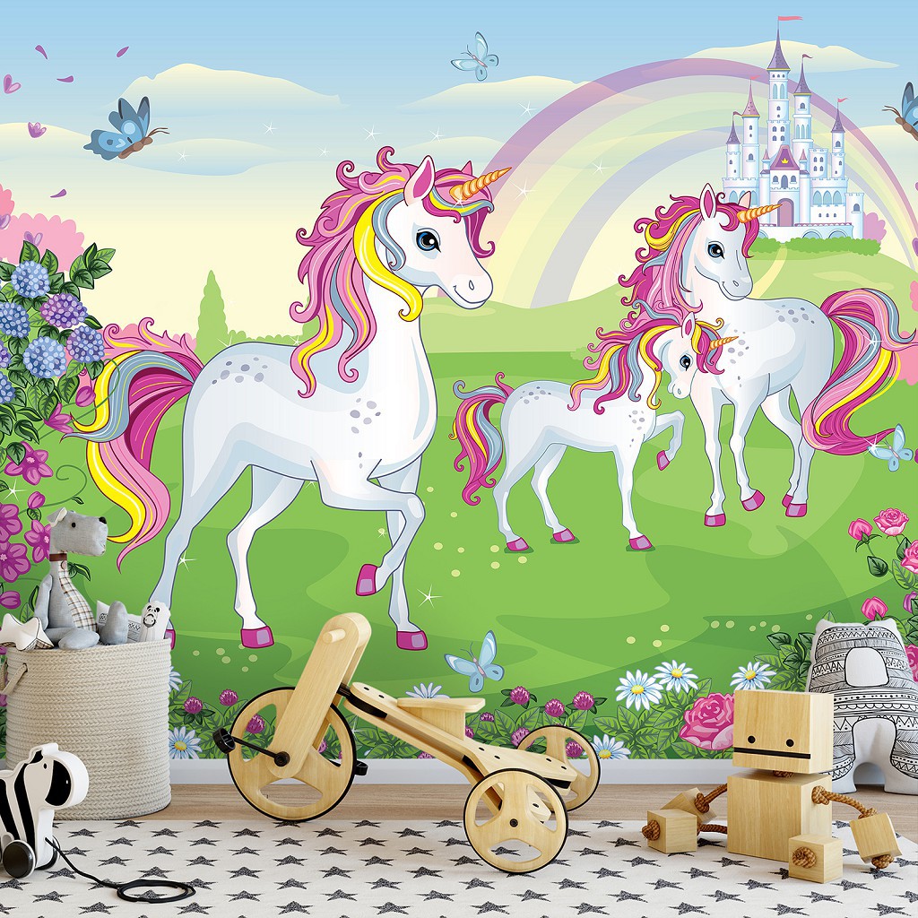 Конь флизелиновые фотообои Для девочек - Единороги (13239V)+клей
