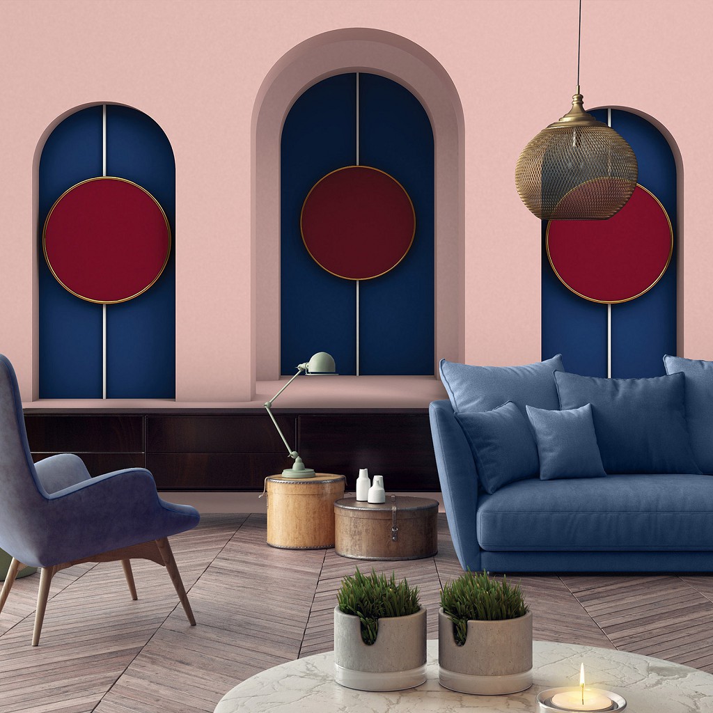 Флизелиновые фотообои 3D Абстракция Минимализм Красные круги в арках (13747V)+клей