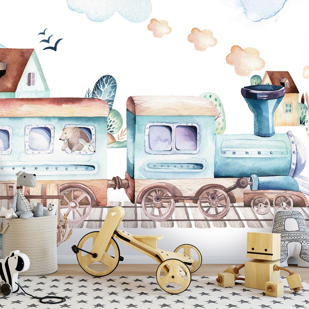 Флизелиновые фотообои в детскую комнату мальчика Поездка на поезде - локомотив (13526V)+клей
