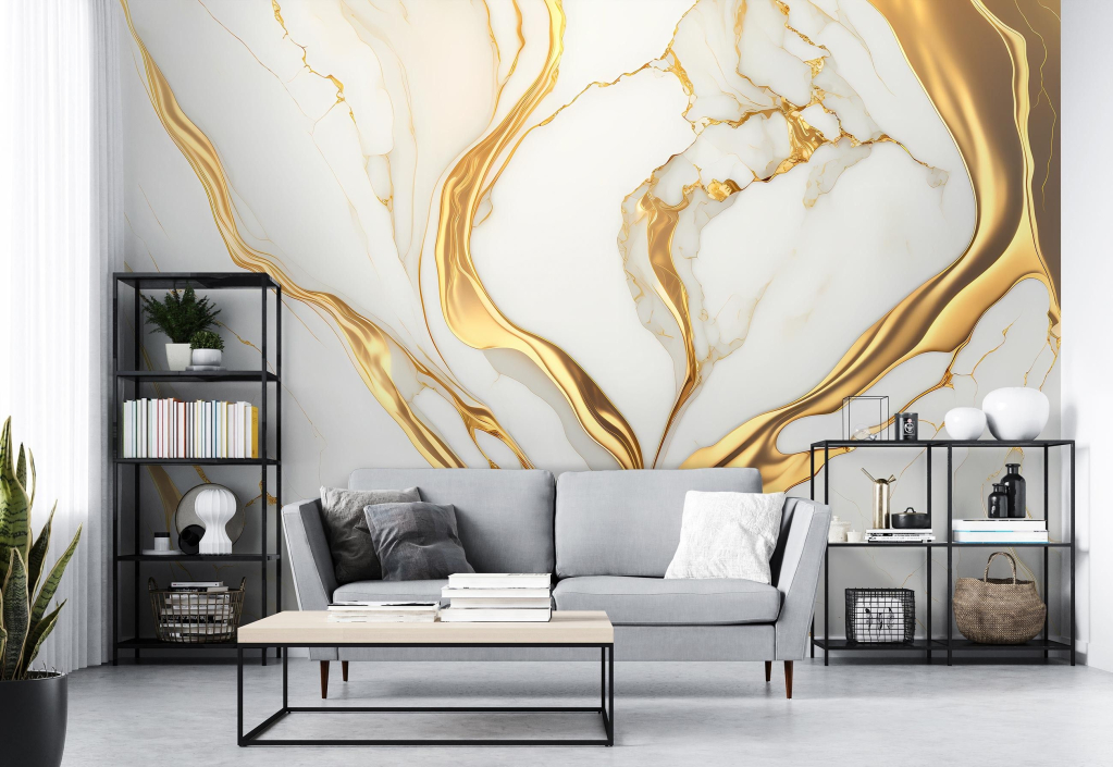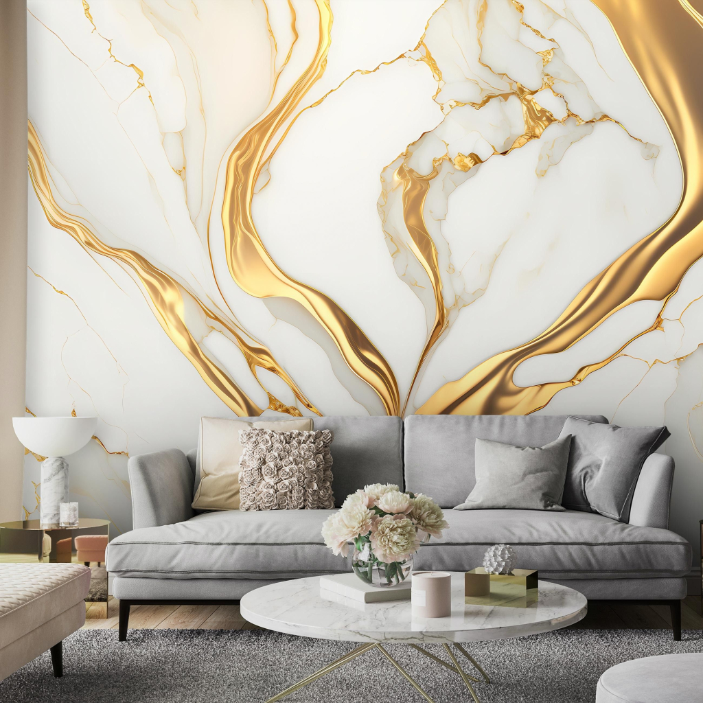 Фотообои флизелиновые Золотой мрамор Абстракция Белый с клеем 416x290 см (14859VEXXXXL)