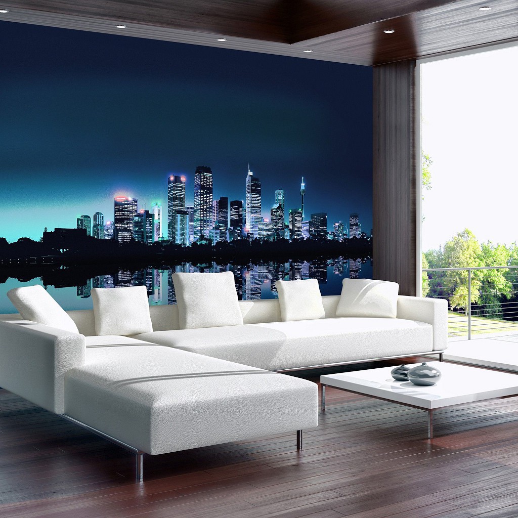 Отзывы о Фотообои в спальню над кроватью фото 368х254 см Город Нью-Йорк - Отражение небоскребов на синем фоне (051P8)+клей