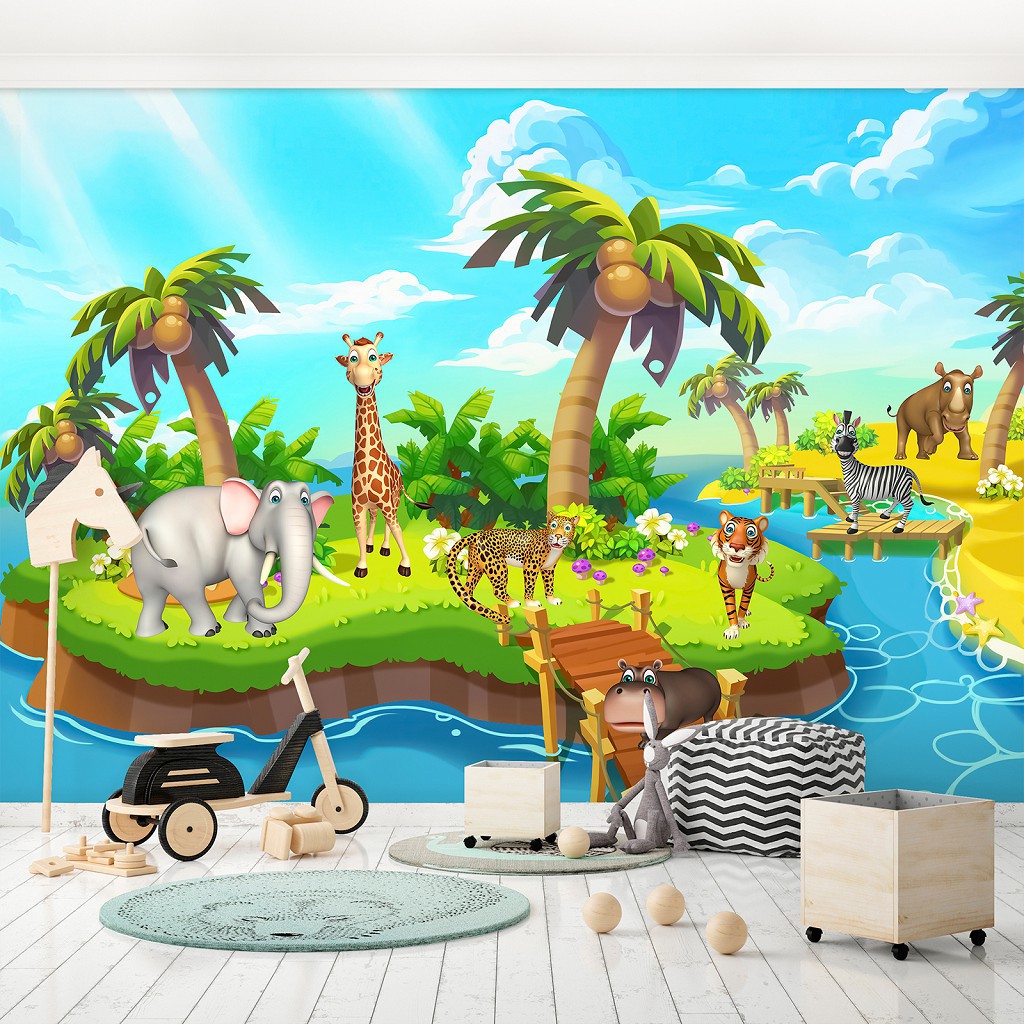 Флизелиновые фото обои детские 254 x 184 см Зверята на острове 13328V4+клей