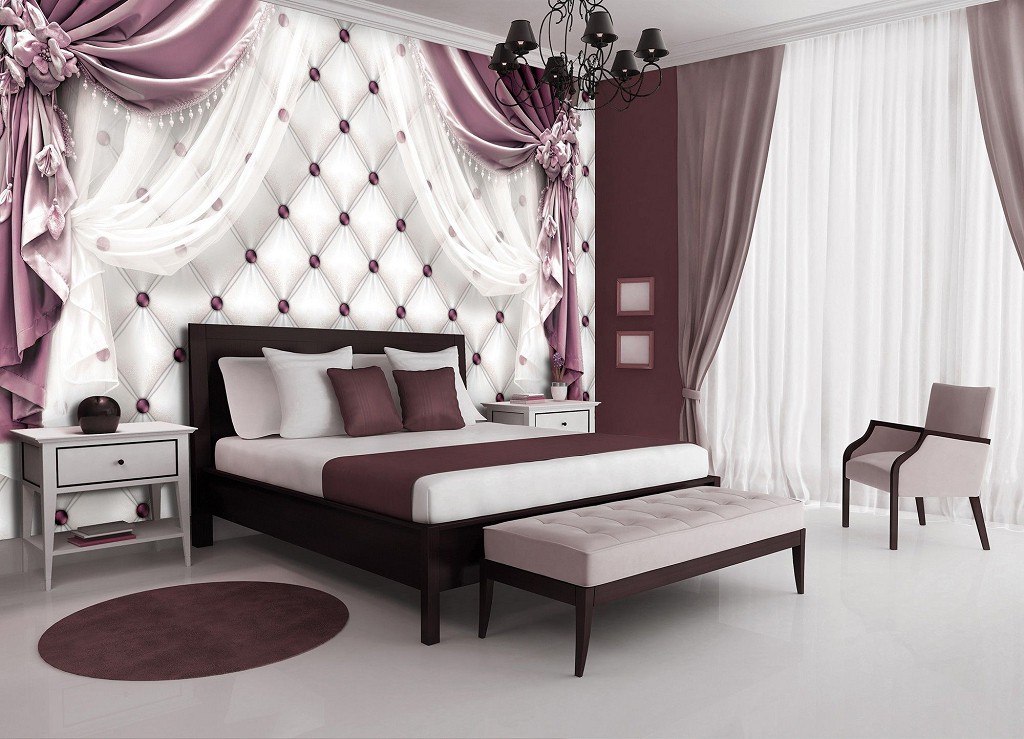 Фотообои флизелиновые 368x254 см Сиреневые шторы и белый стеганый узор (3560V8)+клей