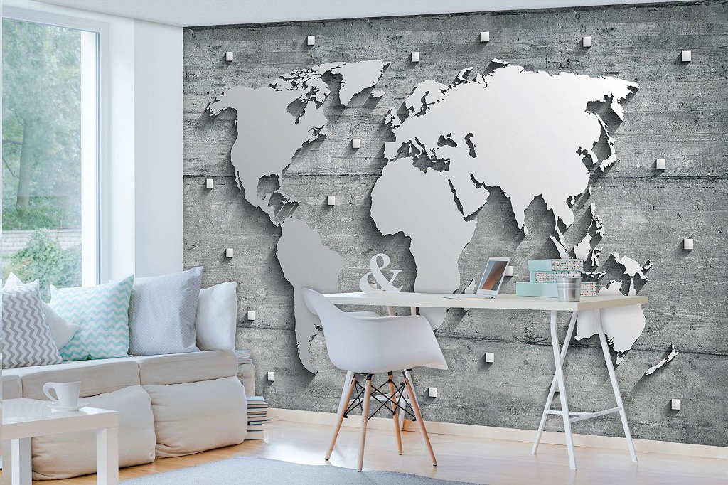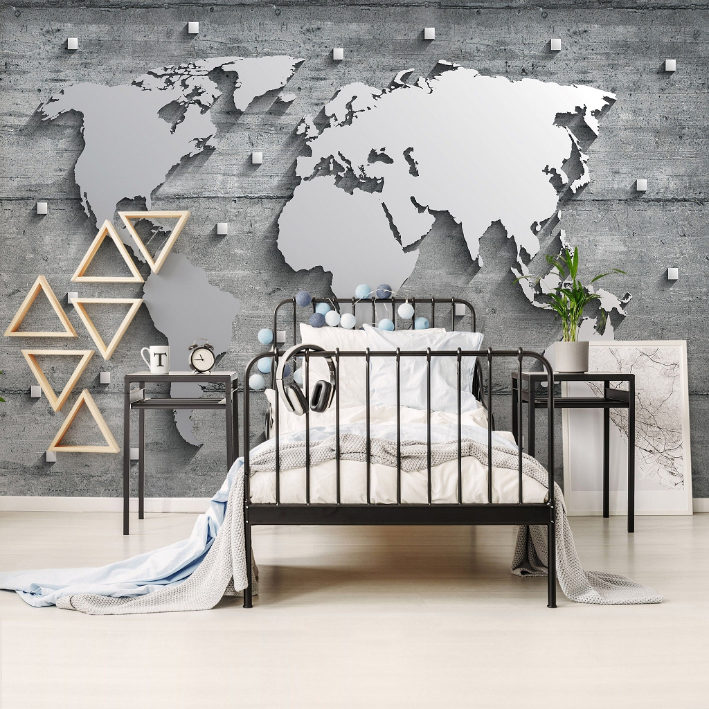 Отзывы о Флизелиновые фото обои под бетон 3Д Стиль лофт 416x254 см Карта мира из стали на стене (10420VEXXXL)+клей