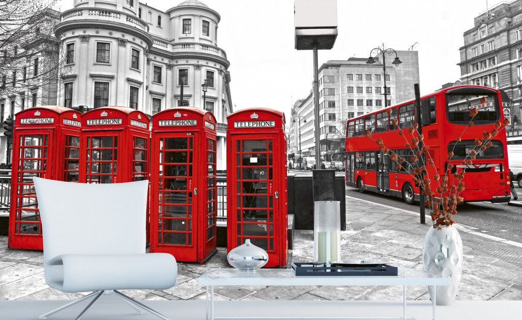 Фотообои флизелиновые 3D город Лондон 375х250 см Телефонные будки и автобус (MS-5-0020)+клей