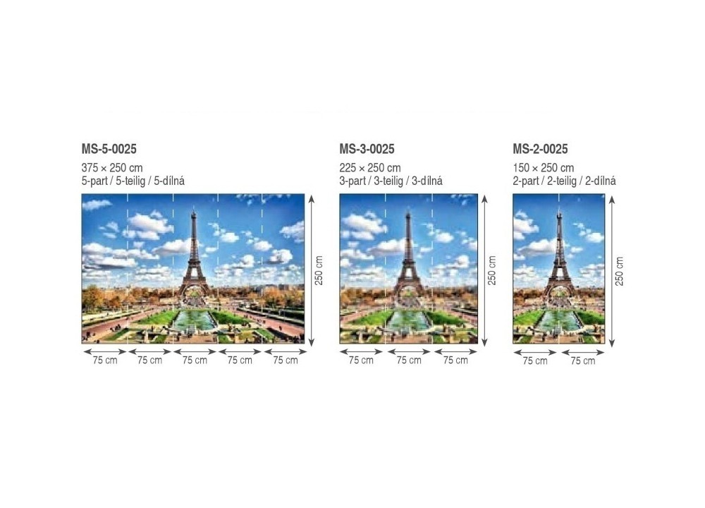 Фотообои город Париж Эйфелева башня (MS-5-0025) напечатаны на флизелине плотностью 150 г/м2. Высота фотообоев 250 см, а ширина 375 см. Производитель комплектует фото обои клеем и инструкцией. Фотообои состоят из 5 вертикальных частей и весят 1,8 кг. На фотообоях изображен город Париж, они имеют эффект 3D и визуально увеличат Вашу комнату.