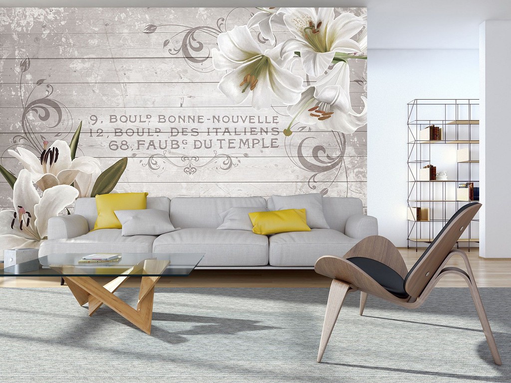 Отзывы о Флизелиновые фото обои под дерево винтаж орнаменты 416x254 см Цветы лилии на досках (10050VEXXXL)+клей