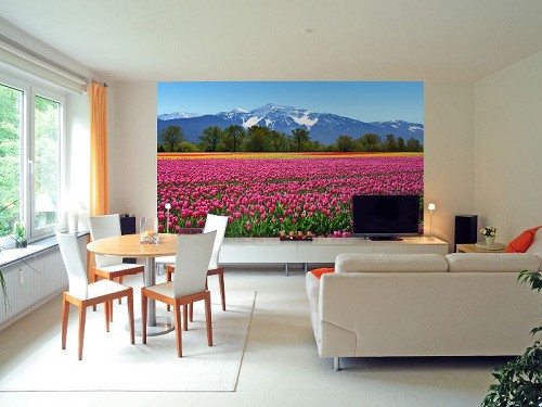 Також деякі фотошпалери з тюльпанами володіють 3D-ефектом, він розширить простір кімнати, візуально збільшить її. Пам'ятайте! Ефекту як кінотеатрі чекати не варто, це все такі гладкі фотошпалери на рівній стіні.