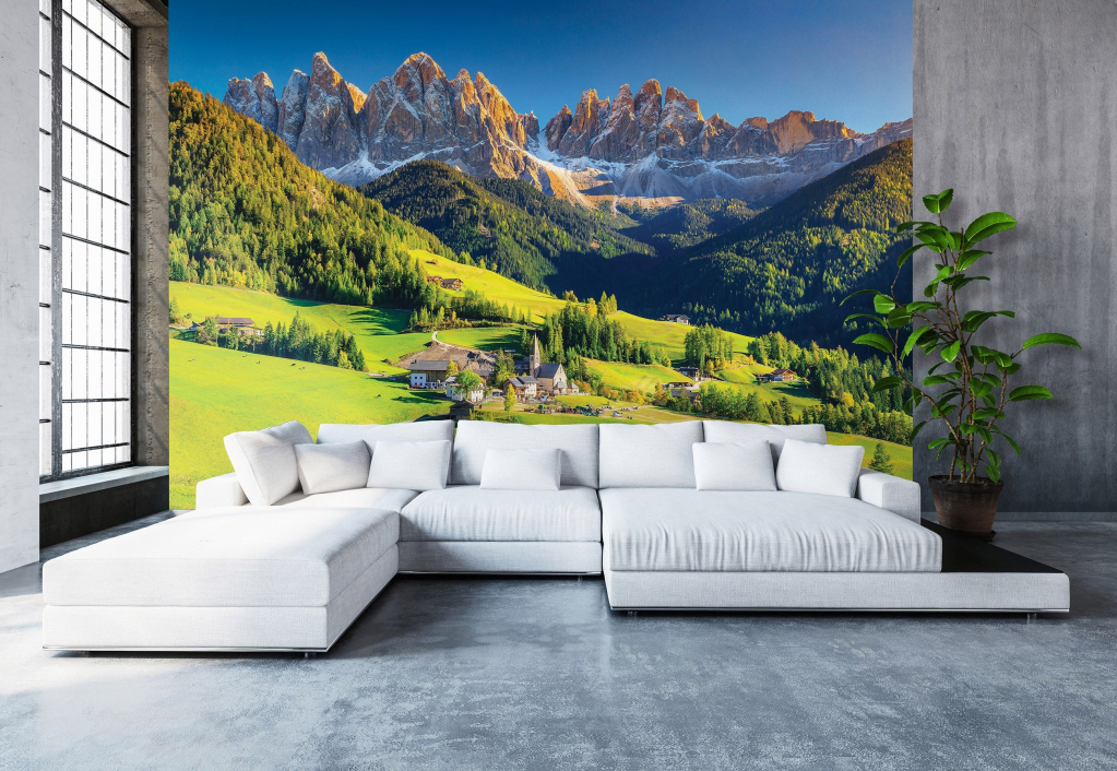 Відгуки Флізелінові 3д фотошпалери фото природи 400х280 см Природний ландшафт Альпійська долина Гори з клеєм (14018VX8)