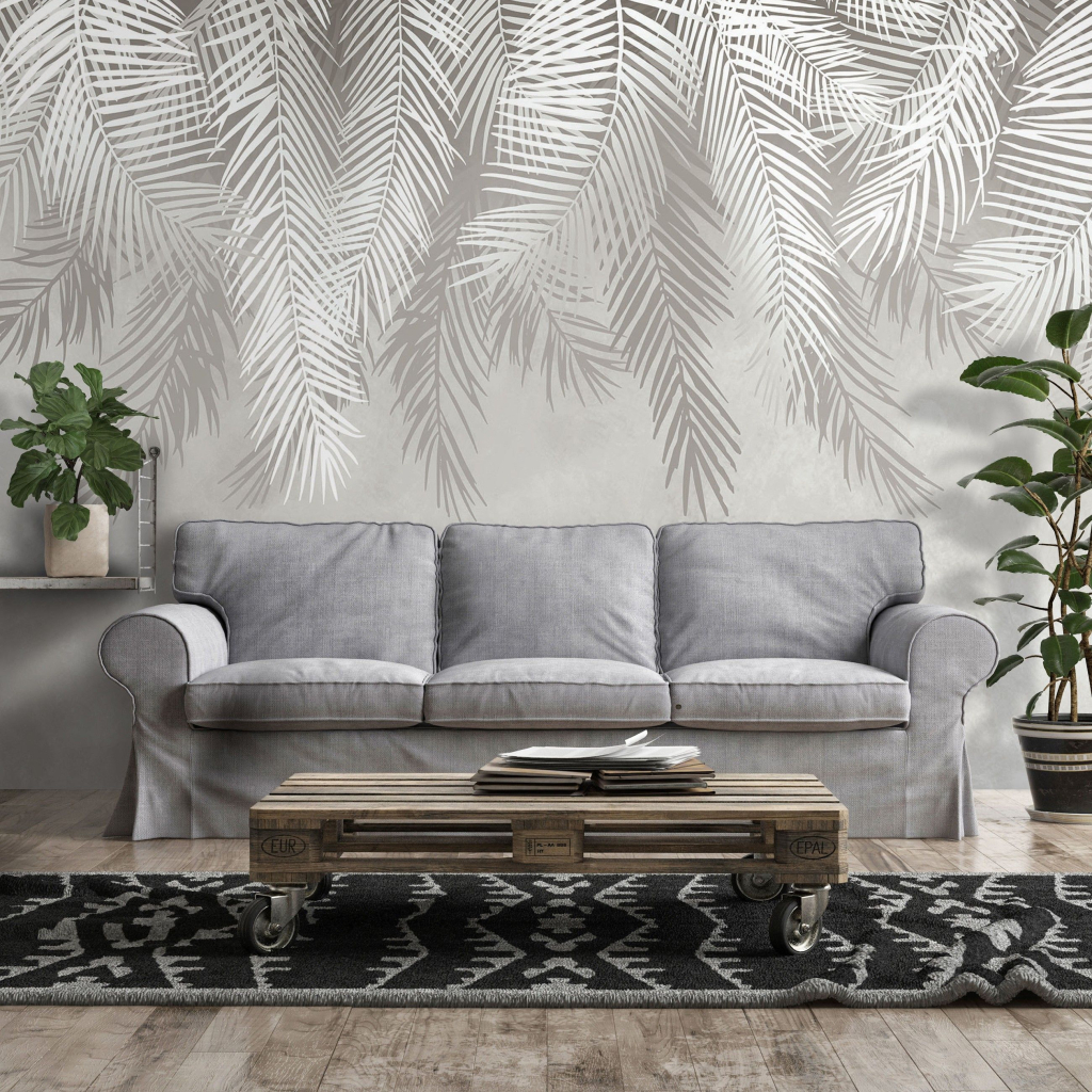 Відгуки Флізелінові фото шпалери сіро-бежеві пір'я 300 x 210 см Природа - Пальмові листя з клеєм (13934VX6)