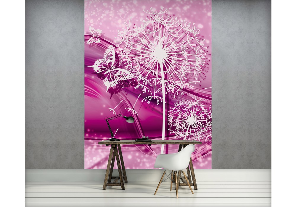 Флізелінові фотошпалери фото квіти 184x254 см Білі кульбаби та метелики на рожевий фон (3637V4A)+клей