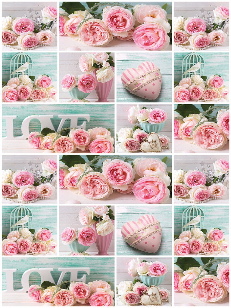 Відгуки Флізелінові фотошпалери з квітами на стіні 184x254 см Колаж із троянд та сердечок (10465V4A)+клей
