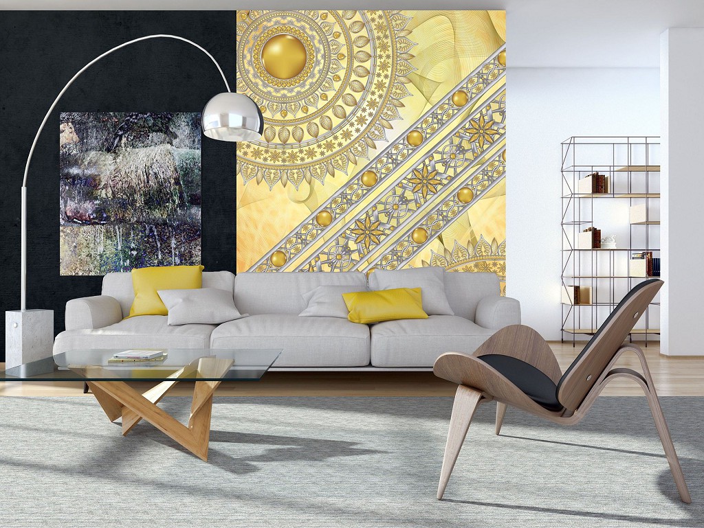Відгуки Абстракції флізелінові фотошпалери на стіні 184x254 см Жовті мандали Етнічний орнамент (10118V4A)+клей