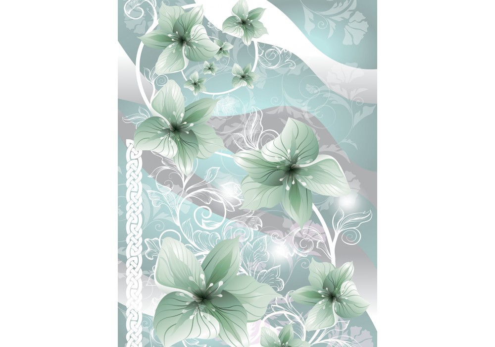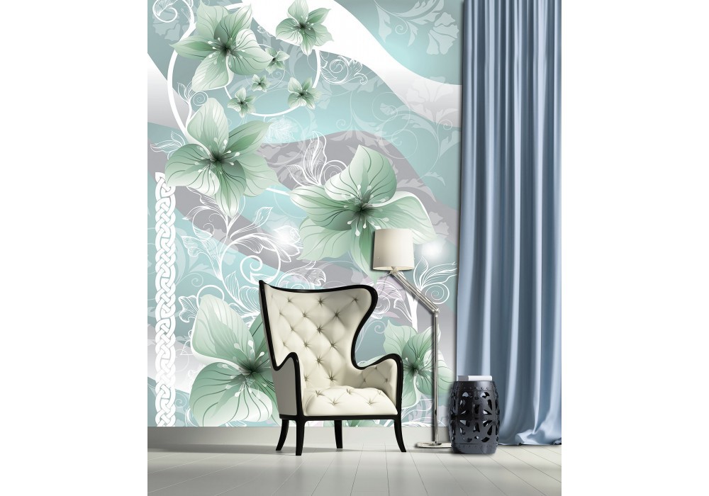 Флізелінові фотошпалери у вітальню 184x254 см Зелені квіти на білих стеблах (1239V4A)+клей