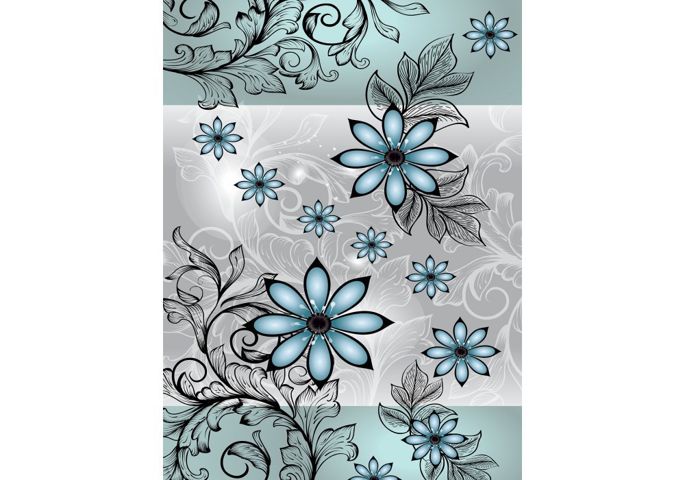 Флізелінові фотошпалери до зали 206x275 см Сині квіти на сірий фон (1246VEA)+клей