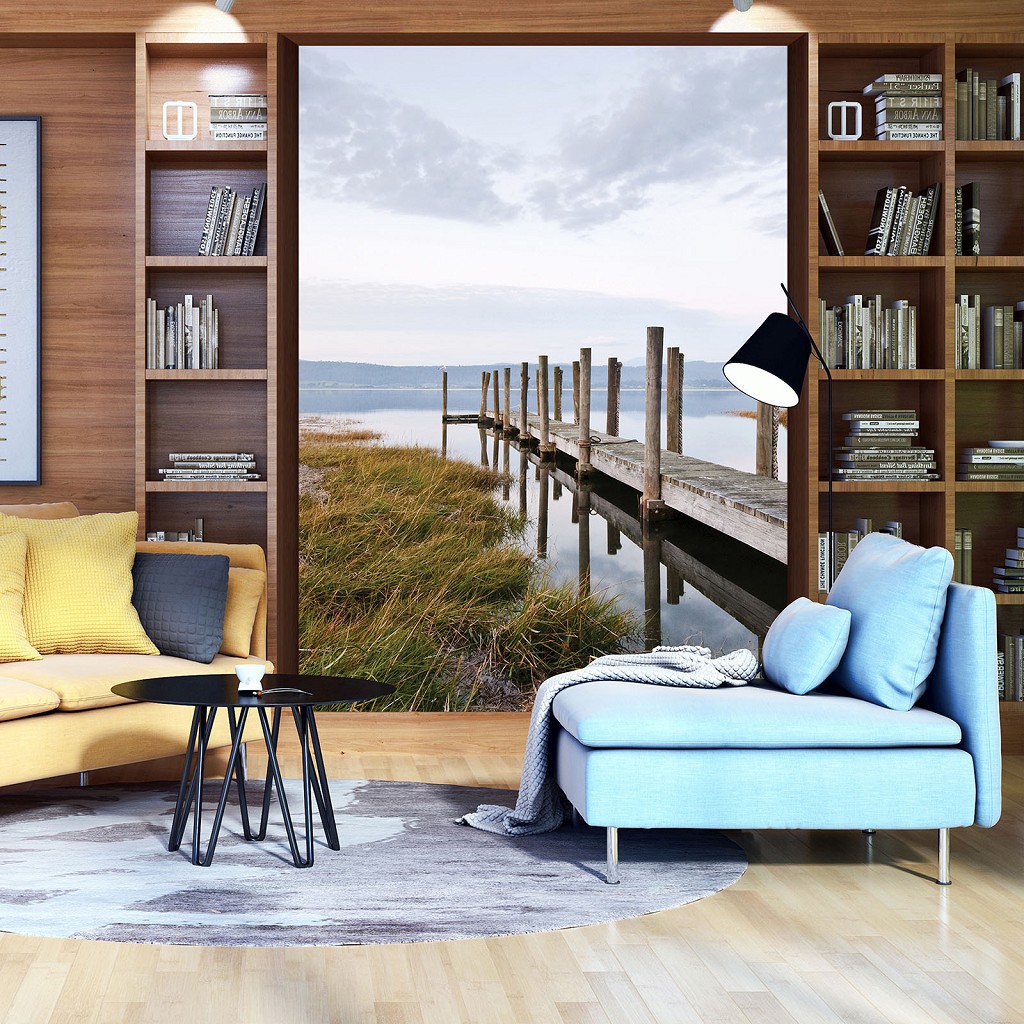 Відгуки Флізелінові фото шпалери весна природа 206x275 см 3D Ландшафт Озеро Пішохідний Міст (12013VEA)+клей