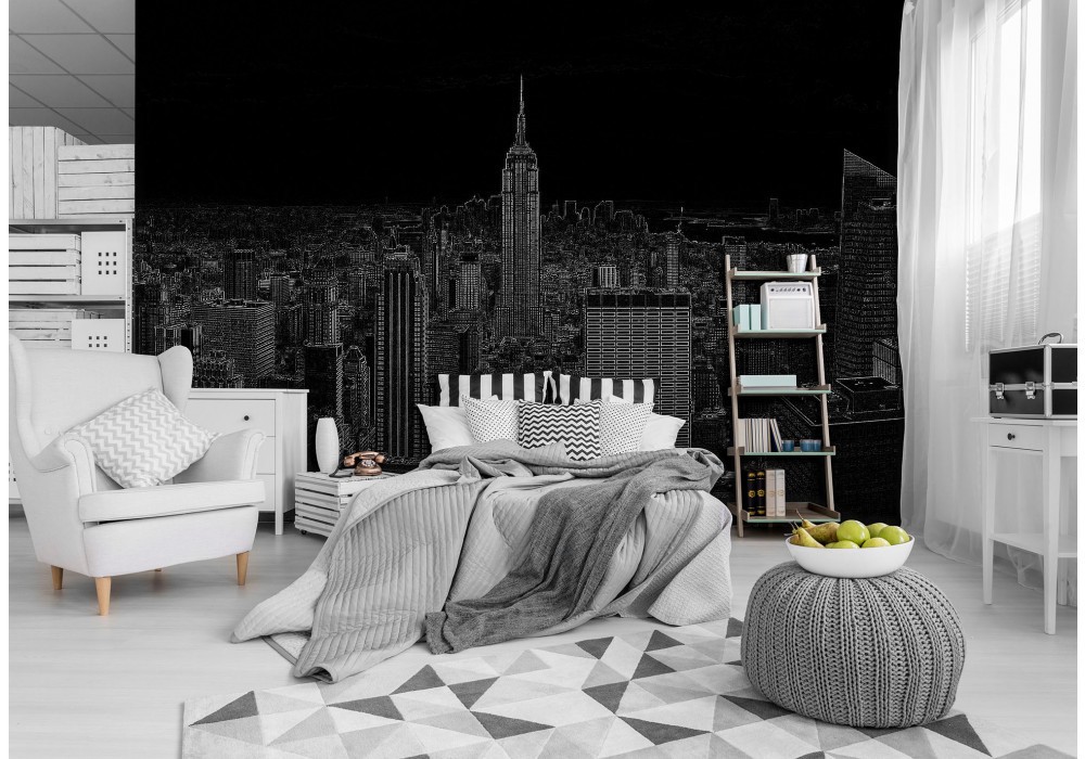 Флізелінові фотошпалери на стіну 254x184 см Чорно-білий малюнок міста Нью-Йорк (10687V4)+клей