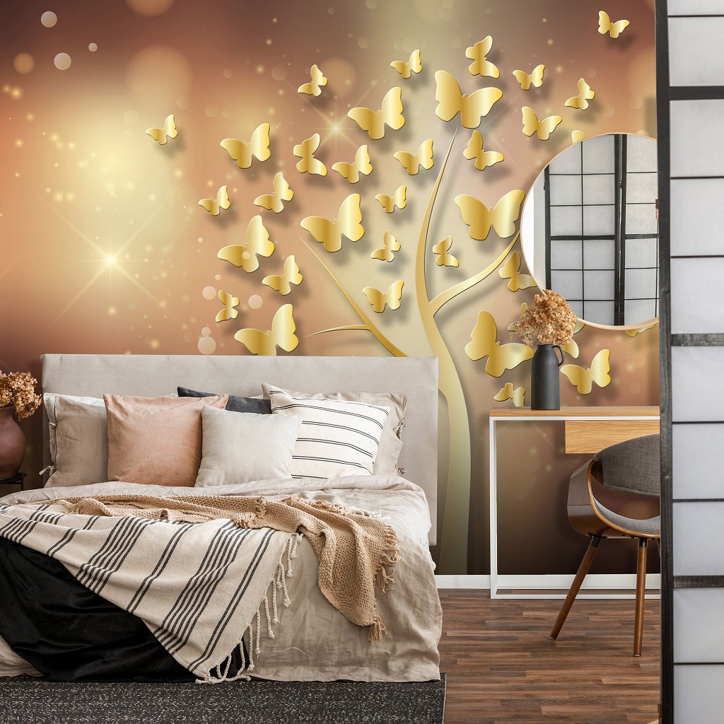 Флізелінові фотошпалери 3д 254x184 см Дерево та Золоті Метелики (10061V4)+клей