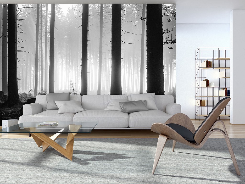 Відгуки Флізелінові фото шпалери з деревами 254x184 см Чорно-білий туманний ліс (12067V4)+клей