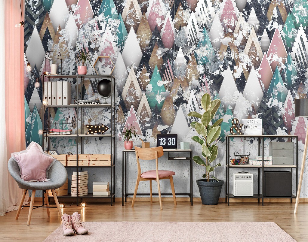 Флізелінові абстрактні фотошпалери на стіну 254x184 см Геометричний візерунок на стіну (12597V4)+клей