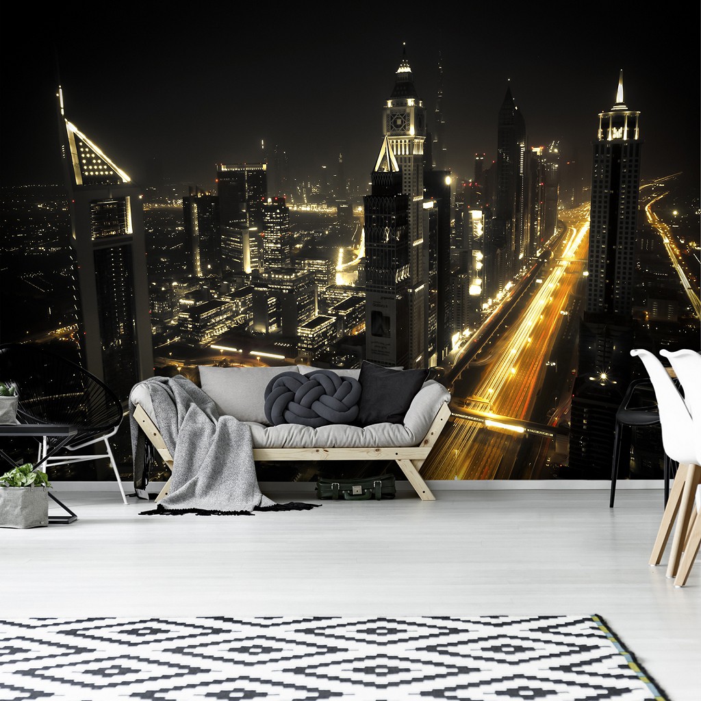 Флізелінові фотошпалери Вулиця Метрополіс 254x184 см Місто убаї вночі (12993V4)+клей