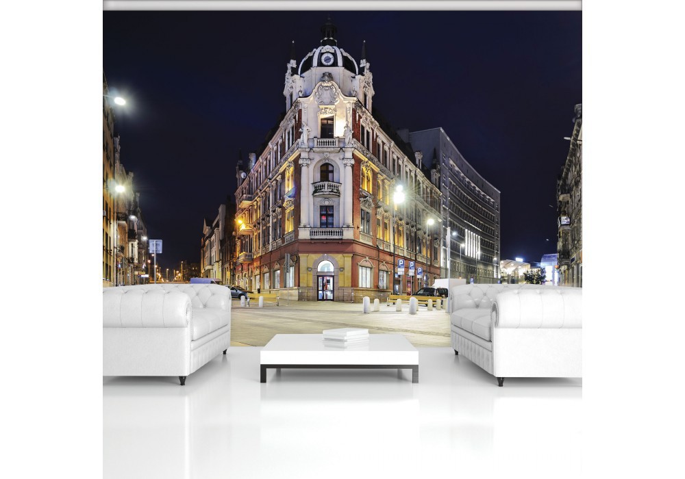 Флізелінові фотошпалери на всю стіну 3Д Нічна вулиця 254x184 см Катовіце – польське місто (10616V4)+клей