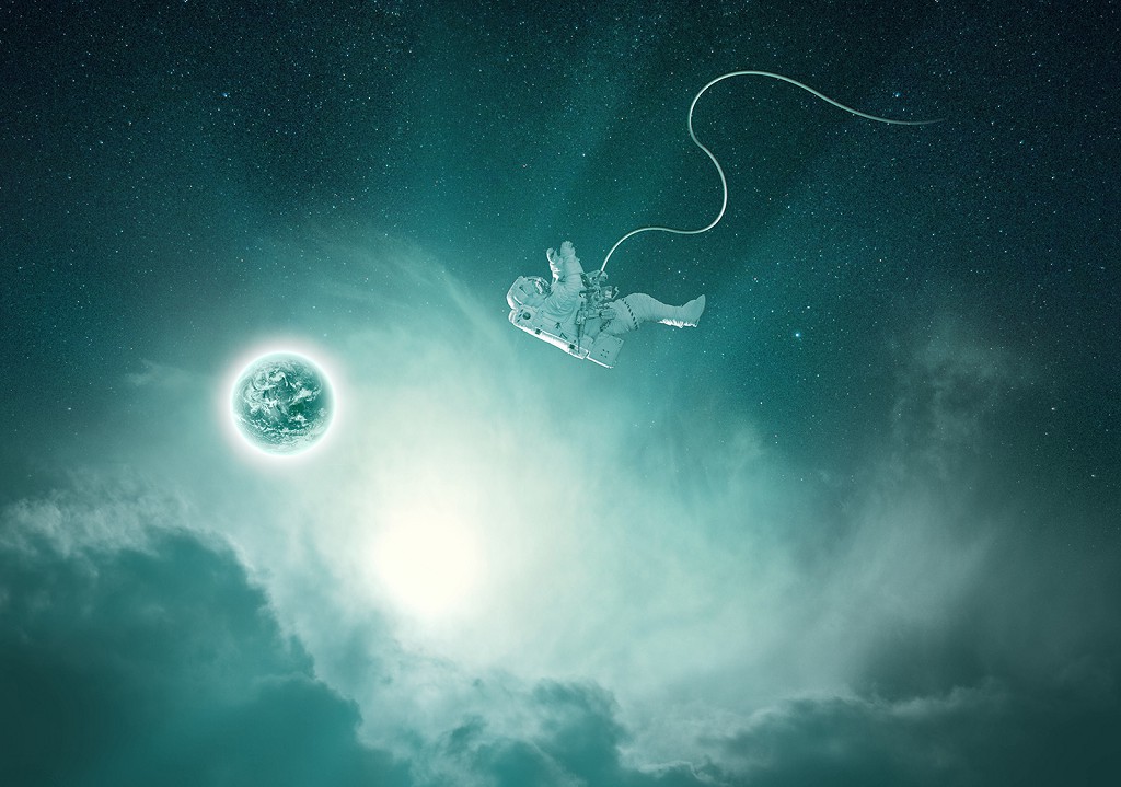 Флізелінові фото шпалери Зірки Астронавт Планета Галактика 254x184 см Космонавт у відкритому космосі (12888V4)+клей
