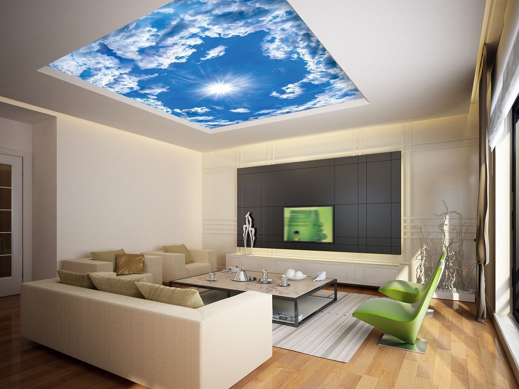 Флізелінові фотошпалери в коридор на стелю 254x184 см Небо - хмари та сонце (2305V4)+клей
