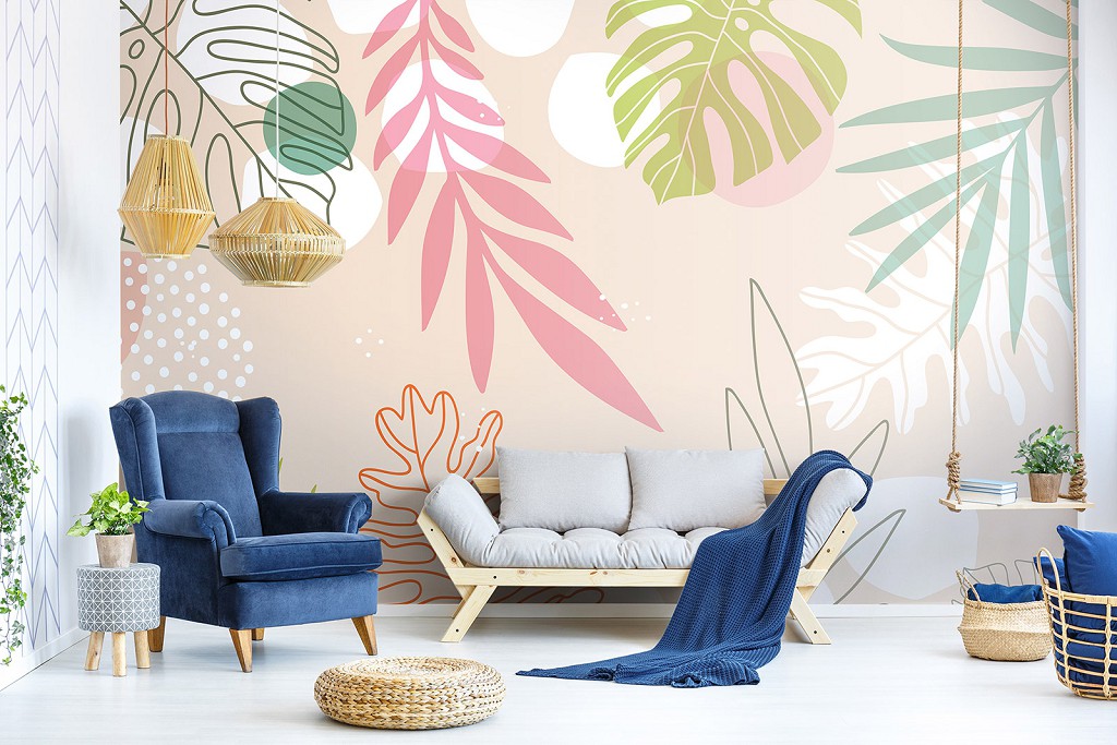 Флізелінові фото шпалери з листя на стіну 254x184 см Пастельний колір (13755V4)+клей