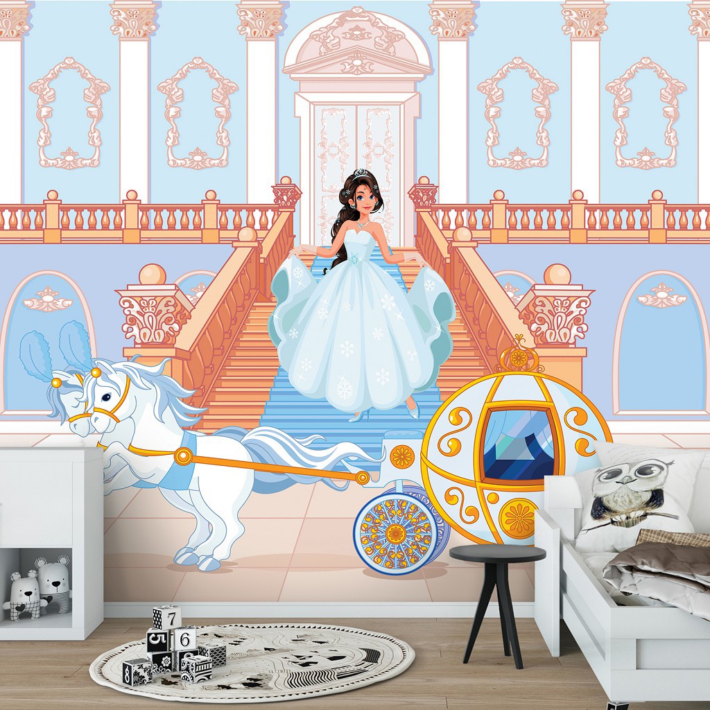 Флізелінові фото шпалери з принцесами дісней 254x184 см Дитячий палац та карета (12532V4)+клей