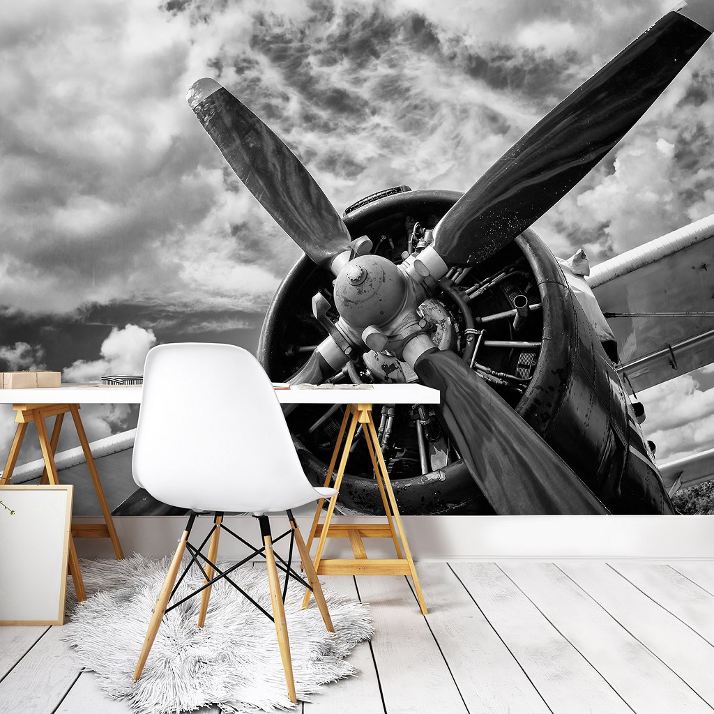 Флізелінові фотошпалери з літаком 254x184 см Чорно-білий пропелер (12714V4)+клей