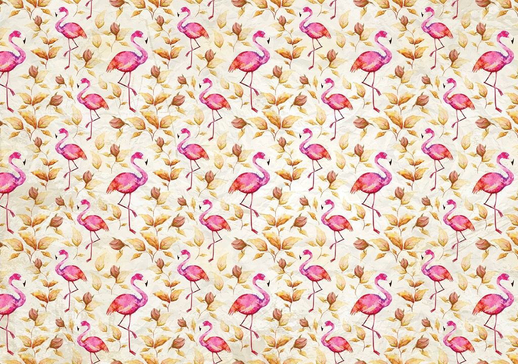 Флізелінові фотошпалери на всю стіну 254x184 см Візерунок з фламінго з листочками (3327V4)+клей