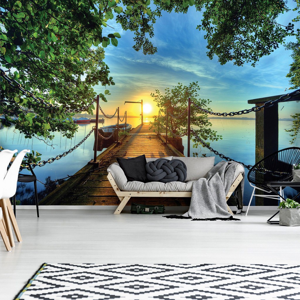Відгуки Флізелінові фотошпалери мости в інтер'єрі 312x219 см 3д Схід сонця над дерев'яним пірсом (2223VEXXL)+клей