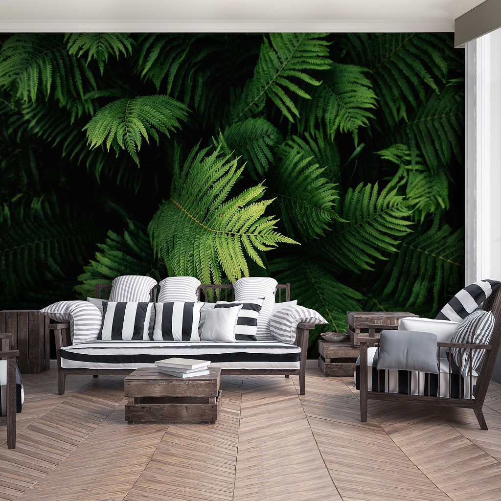 Флізелінові фотошпалери до спальні над ліжком 312x219 см 3Д Природа Листя Ботаніка (12914VEXXL) +клей