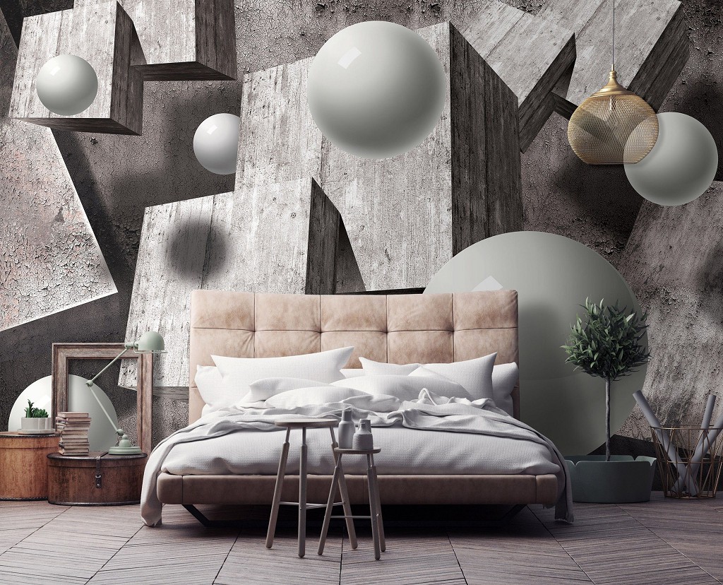 Відгуки Абстрактні флізелінові фотошпалери на стіні 312x219 см 3D Сірі кулі та куби у просторі (10235VEXXL)+клей